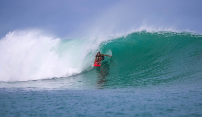 I am lying in a hammock gently swaying beneath the palm-leaf thatched roof of a surf camp built over twisted mangroves and surrounded by coconut trees. The air is warm and humid, but there is just the right breeze to soothe sun-kissed skin. The ocean, just metres away, provides the tranquillising sound of small waves washing on the beach, interrupted only by the voices of children laughing and playing in the distance. There is a rich aroma of coffee coming from the kitchen and the scent of suncream on my skin brings me back to nostalgic memories of childhood travels. There is a relaxed vibration over the camp and all the other surfers have found their own personal shaded space to kick-back and take rest from the midday sun.