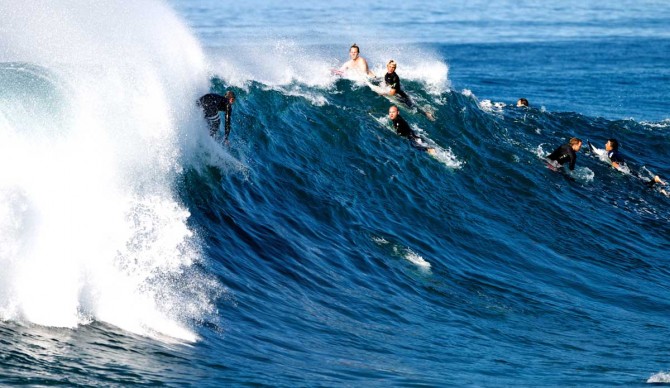 The crowds were building with the swell. Photo: Benjamin Ginsberg