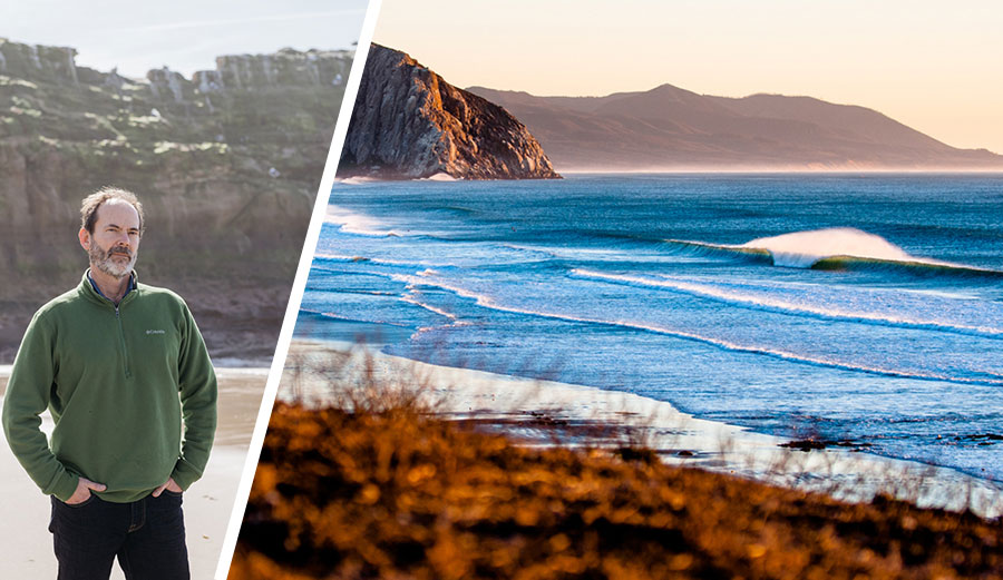 Charles Lester, the now-former Executive Director of the California Coastal Commission, and a part of his beloved coast. Photos: R: NY Times L: Andy Bowlin