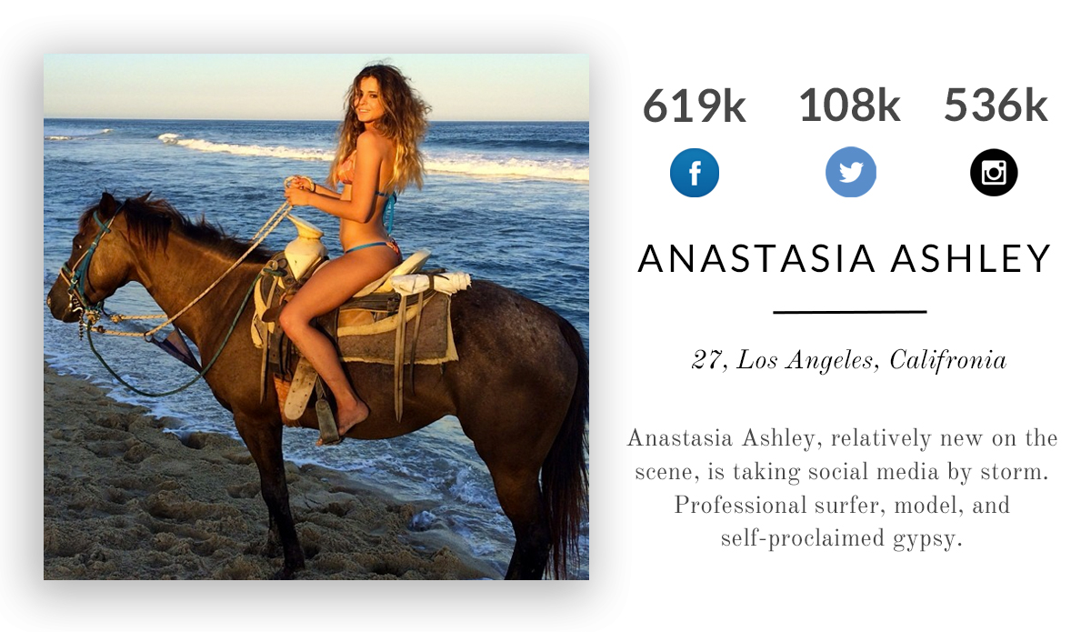 Anastasia Ashley, relatively new on the scene, is taking social media by storm. Professional surfer, model, and self-proclaimed gypsy.