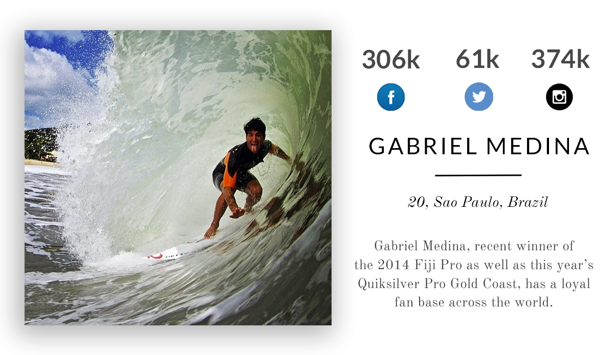 Gabriel Medina, recent winner of the 2014 Fiji Pro as well as this year’s Quiksilver Pro Gold Coast, has a loyal fan base across the world.