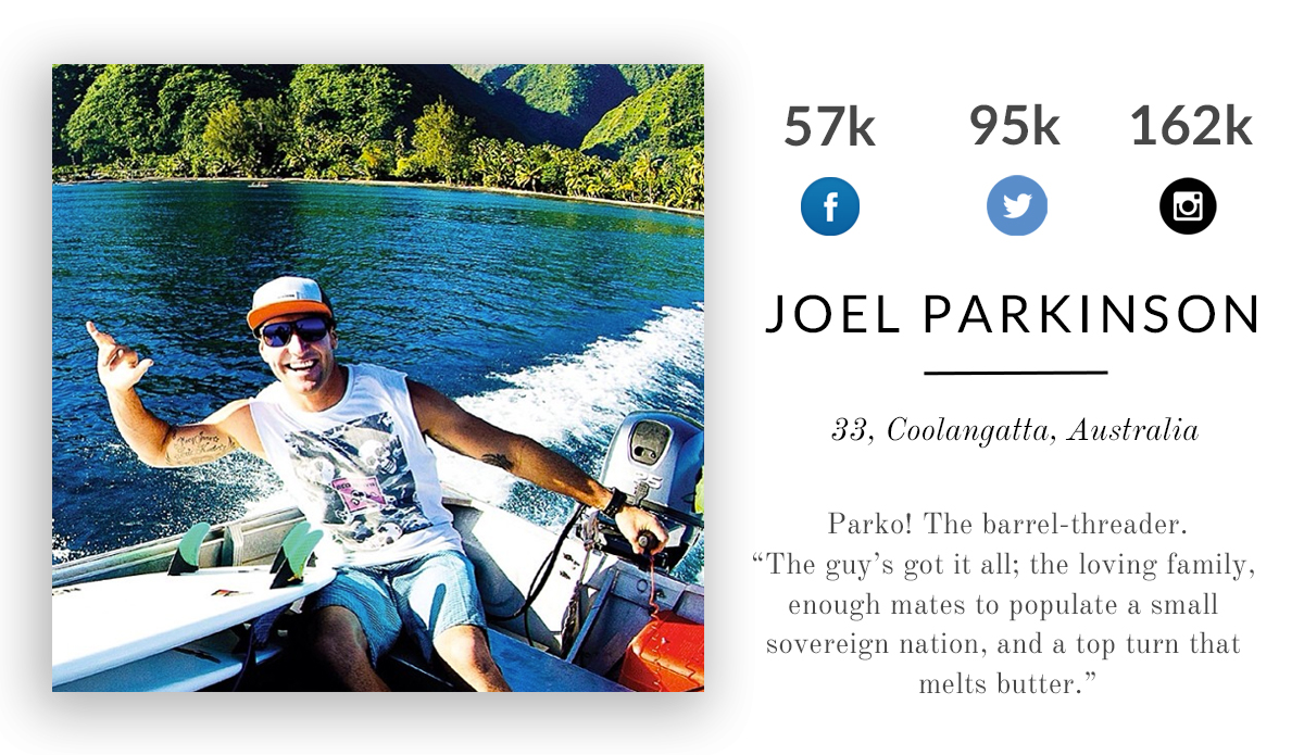 Parko! The barrel-threader. “The guy’s got it all; the loving family, enough mates to populate a small sovereign nation, and a top turn that melts butter.”
