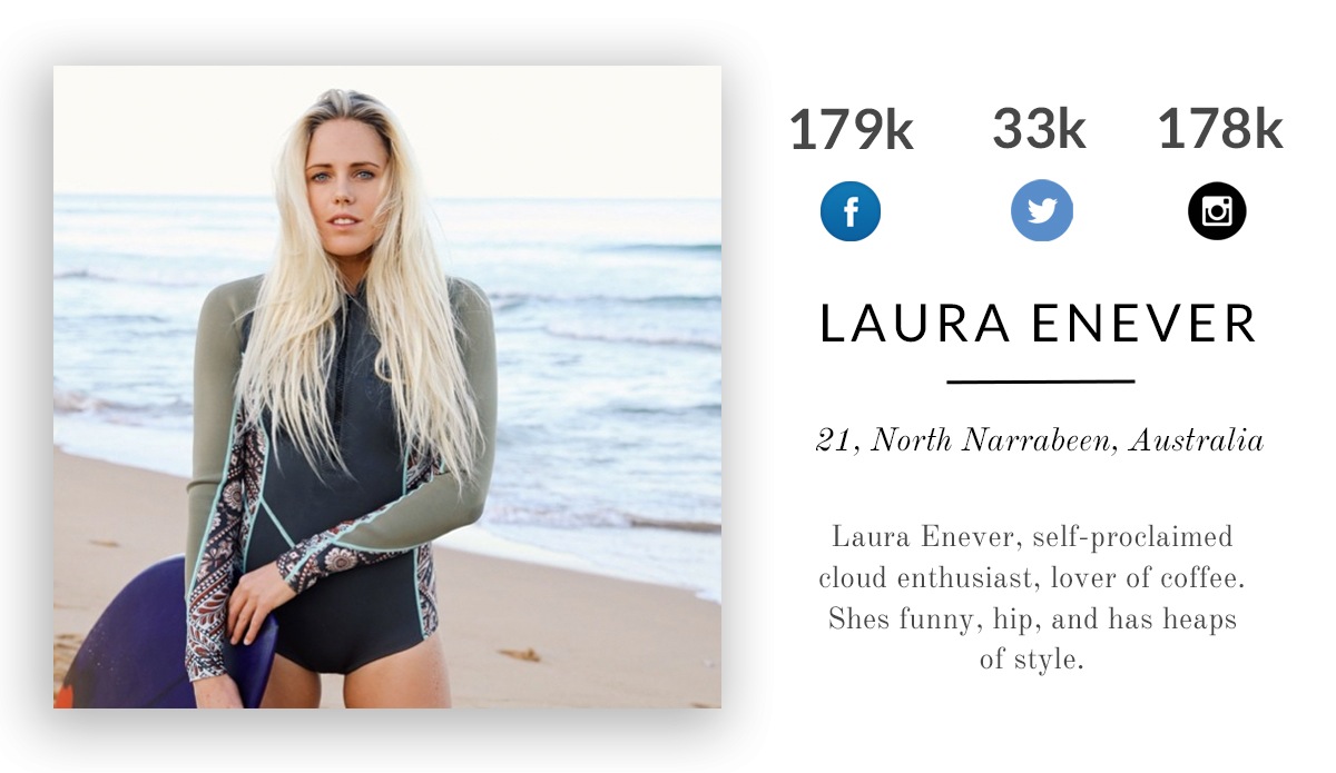 Laura Enever, self-proclaimed cloud enthusiast, lover of coffee. She’s funny, hip, and has heaps of style.