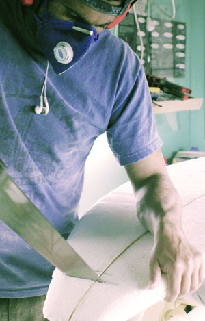 I smiled and I put on a mask to avoid breathing in styrofoam dust and I planted myself in the doorway. Hani had invited me to watch him shape a surfboard before we sat down to lunch.