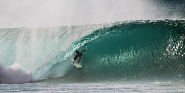 A fight on the North Shore instigated a wave of rumors involving tension between Hawaiian and the visiting surf community. 2011 Pipeline Master Champion Kieren Perrow, oblivious. Photo: ASP