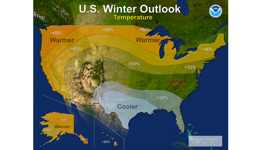 In a report issued today, NOAA’s deputy director Mike Halpert also anticipates a coming shift in temperature. “While temperature and precipitation impacts associated with El Niño are favored, El Niño is not the only player,” Halpert stated. “Cold-air outbreaks and snow storms will likely occur at times this winter.”