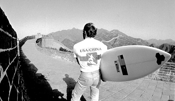 “Thruster Diplomacy.” Matt George on The Great Wall, circa 1986. Photo: Warren Bolster via the Surfing Heritage and Cultural Center