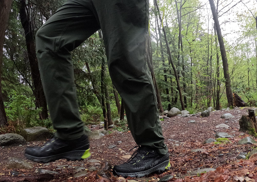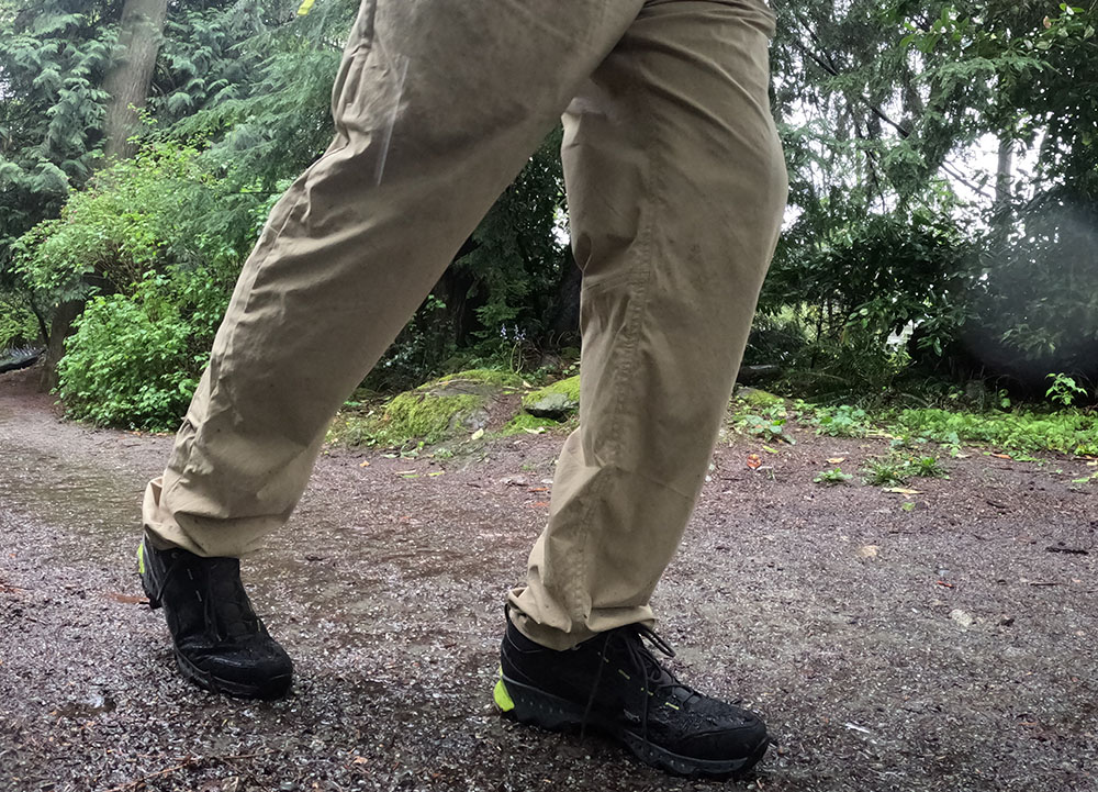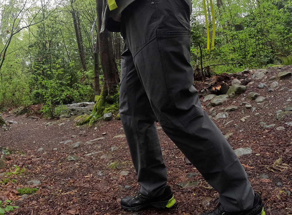 Steve Andrews tested the pants in the coastal rainforest and craggy bluffs of the Coast Mountains in British Columbia, a place with thousands of miles of hiking trails. The humid climate lends itself well to testing the water repellency of these hiking pants. He carried a few essentials, such as a phone and a multitool, to see how the pants would feel with gear in the pockets. The steep trails provide perfect terrain to see how the pants stretch under duress, as well as how breathable they are after a long day on the trail.