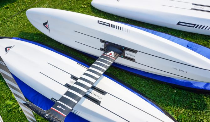Furthermore, when combined with a thinner and longer board outline, a shaped hull provides incredible light-wind performance. Over the past year, light-wind boards have shifted from looking more like a SUP board with a wide and stable outline to the longer and thinner downwind foil boards that are becoming wildly popular today. This shape allows a foil board to “track” and build speed while still on the surface of the water, so riders can get up on foil in extremely light wind conditions.
