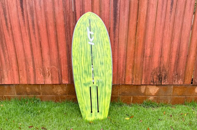 Recently, a few board designers (most notably KT) have been experimenting with strange and interesting board shapes around the back of the board/foil mast connection area. KT’s Ginzu has a stepped deck in the back, narrowing the thickness of the board between the rider’s back foot and the top of the mast, providing a noticeable increase in sensitivity.