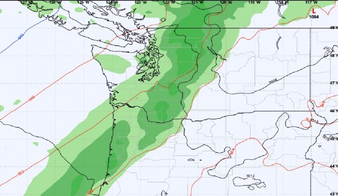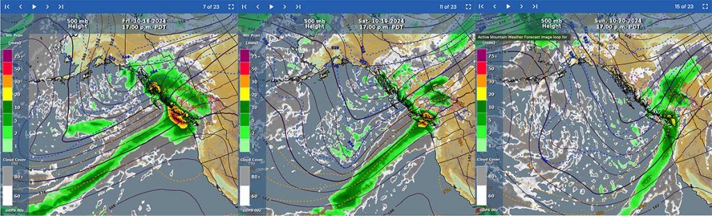 Close to eight inches of rain are forecasted to hit the west coast of Vancouver Island and the Olympic Peninsula starting Friday. A high-pressure sandwich off the coast of California and in the Gulf of Alaska are creating conditions that will push a trough of moisture like opposing wheels on a conveyor belt onto the West Coast, lasting through Sunday at least. Colder than normal temps are forecasted as well, possibly bringing the freezing level down to 3,000 feet in the mountains of British Columbia and northern Washington. In other words…yee-haw.