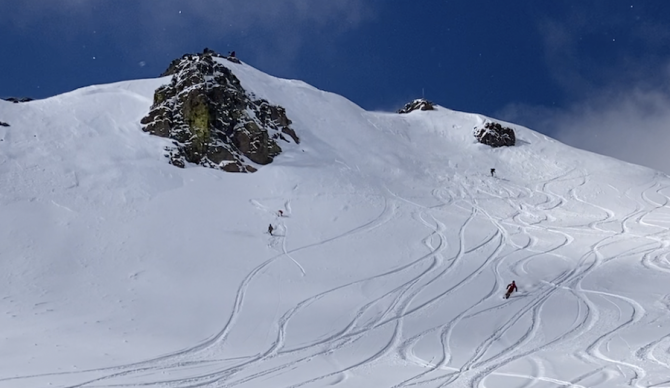 Getting in line was like walking into a party. Old friends were greeting each other, groups were psyching each other up and trying to decide which lines through The Fingers were skiable, and I was just soaking it all in on my first powder day at the legendary resort. By 8:50 the line stretched to almost a football field in length. At nine when the first chair boarded, a cheer rose up from the liftline, accompanied by the clacking of ski poles. We got onto the lift in the first 30 chairs or so, and by the time we were halfway up the mountain the first lines were unfolding beneath us. Hoots exploded on the loaded chairs as a huge backie was sent through The Fingers, and even louder cheers as a similar send ended unsuccessfully in an explosion of powder.