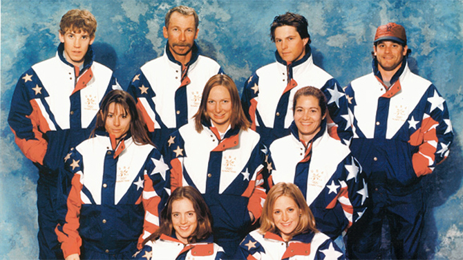 The first United States Olympic snowboard team. Look at that style…! Christy is at bottom left. Photo: ESPN