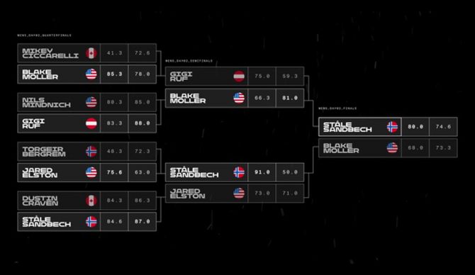 Ultimately it was Sandbech, who somehow rode the venue with a playfulness normally reserved for sidehits, that came out on top. His 91 — the highest score of the day — in the first run of the semi-finals is the line to watch.