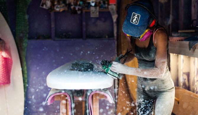 Surfboard building is unlike any other trade – there’s no formal training or trade schools. Hand shaping surfboards breeds a culture all its own, interconnecting generations with knowledge and tradition passed down from one to the next. Techniques are often unique to each shaper and refined over time, and eventually given to someone else to progress knowledge. Mentorships, which often spring from within intimate circles in shaping bays or sanding rooms, have mostly been a benefit of the guys-only club. It can be a tough one to break into.