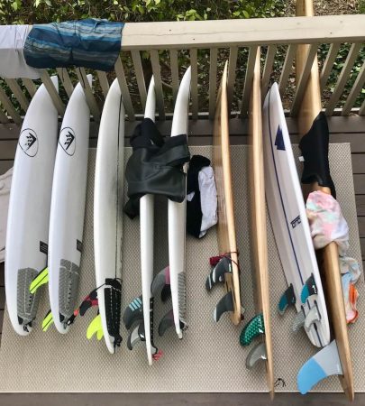 How many options is too many options? Firewire’s Mike Thomas has over ten boards in his garage on constant rotation, while other Firewire employees surf the same two shapes over and over.