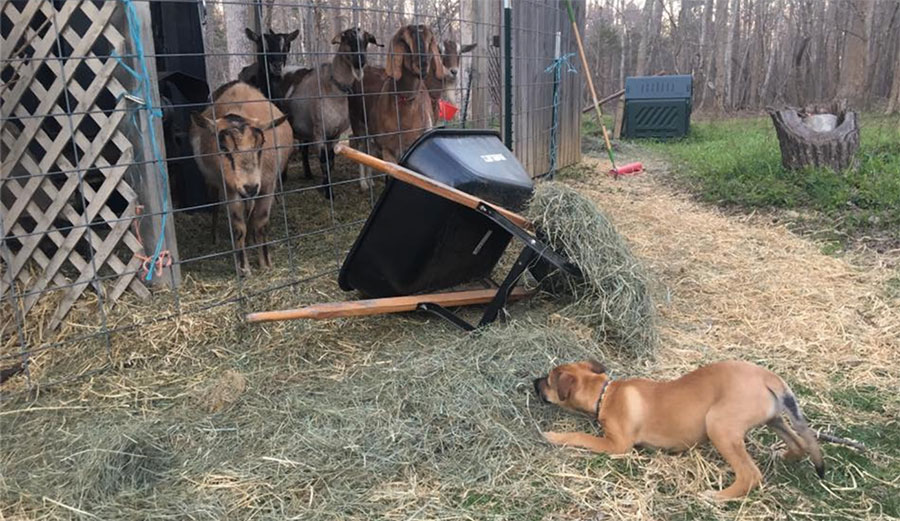 Daisy in North Carolina, interested in these strange new creatures. Photo: Schwab/Facebook