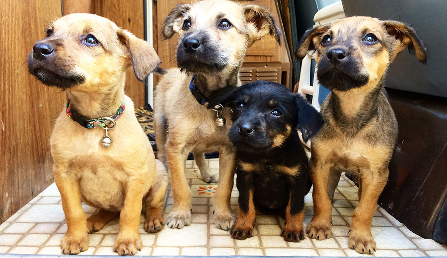 For days, the puppies hung on by a thread. Fed by hand with syringes full of puppy milk, they slowly regained their strength. Tentatively, they began playing with each other, nipping gently, mewling like kittens, and fighting over food. Their bellies, still swollen with worms, began to get smaller. With medication from a nearby vet, vast amounts of worms, white and thick as bean sprouts, came out in their shit. Mites infesting their skin died and came to the surface in pus-filled infections, and hatch after hatch of fleas was killed off by endless flea baths and powders.