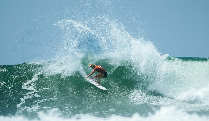 “I had a little bit of a mishap with my board and I made some mistakes, but I knew that, if I caught the right wave, I wasn’t going to mess up,” she said in a post-heat interview. “So I’m so glad that came through. I had the second in Portugal – it was a good result, but I definitely wasn’t happy, so to back that up with this gives me so much confidence.”