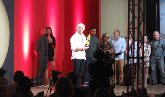 Sam George accepts his Surfer Poll Award.