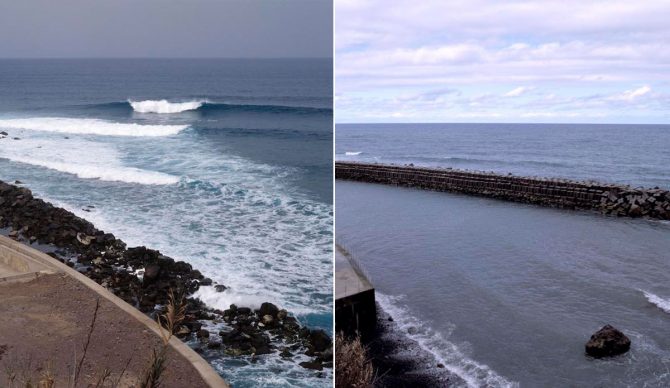 (L) Ponta Delgada before. (R)Ponta Delgada after. Photos: Save The Waves