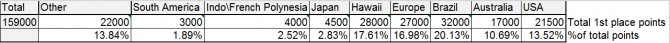 Brazil only hosts 8% of competitions yet awards 20% of the ranking points in the QS.