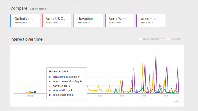 What works for the big guys should work to greater effect on the QS (going back to the search results graph). Though all QS10000s have regular pulses of interest around their running dates, events from Brazil hardly register next to similar events from Hawaii. Even a QS3000 event like the Volcom Pipe Pro is towering way above the Quicksilver Saquarema QS10000 in Brazil. Just a few weeks ago, the WSL PR machine bombarded surf magazines with news of its dreamy new contest in the Mentawais. QS frontrunner Zeke Lau was quoted on Tracksmag to be frothing to surf crystal clear barrels with only two guys out. “I’m going!” big Zeke stated. “They should make that a prim, bra!”