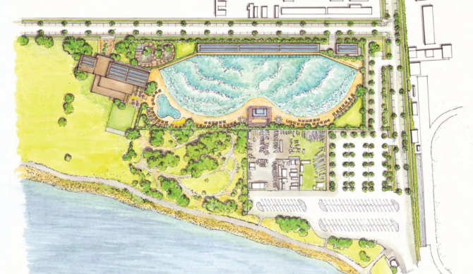 The name is an homage to a depression-era amusement park nestled in the bay between San Francisco and Oakland. It was once a popular waterfront destination in the area until the late 1930s, but the new concept holding the historic “Neptune Beach” name would offer an entirely different attraction a century later. A web page for the park doesn’t offer many details about the project, but a Wave Pool Mag feature highlighted plans for a $50-million, privately funded development anchored by an Endless Surf wave pool. The park will also house a canoe club, camping/glamping, food and beverage, sailing center, shoreline trail, pump track, and boat launch ramp, according to Wave Pool Mag.