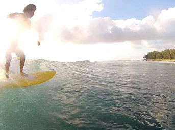 My name is Jonathan Bouic, I am a Mauritian journalist. I started surfing about twenty years ago when my dad pushed me into my first wave. I’ve been an avid surfer ever since, although with limited skills. Surfing isn’t very developed around here – boards are hard to find, the reef is sharp and shallow, and good swells are quite rare. But I’m grateful for this, because when the surf’s good it can be epic, and usually we are just a few people out – if you except the most famous breaks of the island. I cannot wait to bring my three years old son with me to perpetuate the tradition.