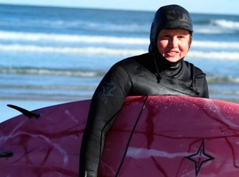 Maureen became a surfer in 1967 when she first saw the Endless Summer on the big screen. She belly whomped in the early years, then in 1974 bought a 6'10" Heritage diamond tail with money saved from baby-sitting. 38 years later and she never looked back. She surfs mostly in Maine and New Hampshire, shaping her first board in 1975, completely self-taught. Most of the boards I make are for my own use though I occasionally knock one off for friends.