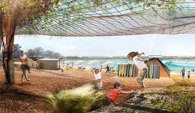 Earlier this week it was announced Coors and Wavegarden will be collaborating to open North America’s first inland surf park, NLand. Today, they announced more details on their mission to put Austin, Texas on the map as a world-class surf destination. NLand is set to open in 2016, it Wavegarden’s second commercial facility after a park in Snowdania, North Wales opens this summer. They gave us the first artist’s rendering of the park itself, promising a facility the size of 9 football fields with a self-sustaining water supply. But really, everybody just wants to know what the wave will be like.