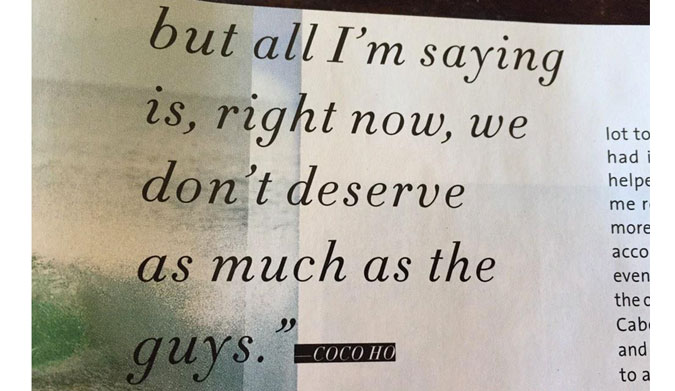 The article, titled “So Ho,” is an interview with siblings Coco and Mason Ho. While Coco Ho’s comments struck me, there was something more: the content of each interview. Coco’s interview focused on her body and her boyfriend, while Mason’s interview was about his career and his surfing. This disparity, as well as Coco Ho’s notion that female surfers don’t deserve as much as men, got me thinking.