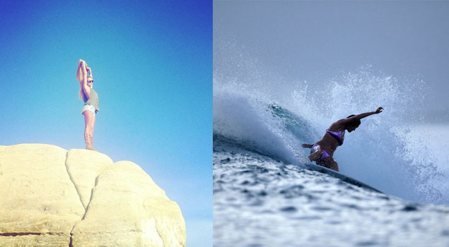 Alana Blanchard achieves the duality of model/athlete with the best of them. Photo (L) alanarblanchard Instagram (R) Clare Plueckhahn