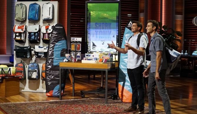 So it’s no surprise that Alec and Aric Avedissian have honed their unique idea and made it big time, appearing tonight on ABC’s Shark Tank. Their company, Rareform, takes discarded billboards and turns them into board bags, backpacks, duffels, wallets, and a variety of other soft goods. The idea came about during a trip to South America when they noticed locals using billboard materials for roofing. They knew they could repurpose the same material back in the states for a variety of purposes.