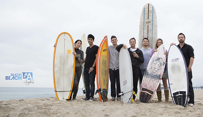 The group of entrepreneurial-minded surfers meet several times a month to hang out, network, talk business, and ride some waves. Photo: Silicon Beach Surfers