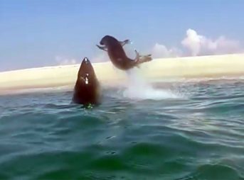 Dramatic Footage Shows Great White Shark and Seal Going Airborne Mid Hunt