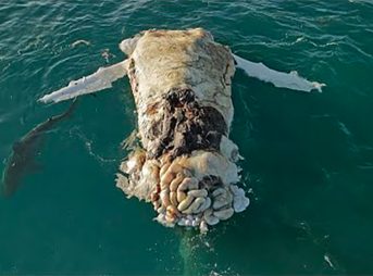 Drone Captures Large Tiger Sharks Gnawing on Dead Whale