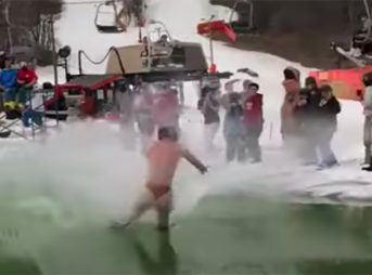 It’s Pond-Skimming Season When Snowboarders Wearing Man Thongs Will Do This
