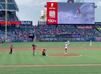 Watch Kanoa Igarashi Throw the First Pitch at Angel Stadium