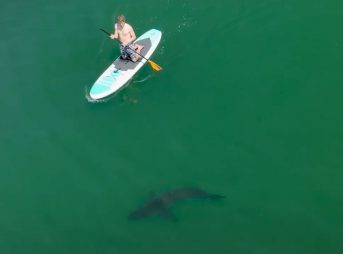 Drone Alerts Paddleboarders to a Great White Shark Just Feet Away
