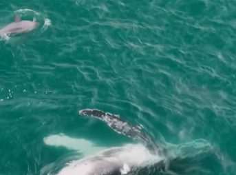 Lost Humpback Whale Guided Into Deeper Waters by Dolphins