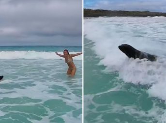 Watch This Sea Lion Go Body Surfing With a Honeymooner