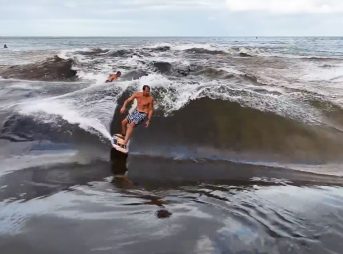 Jamie O’Brien Surfs Oil-Glass Waimea River