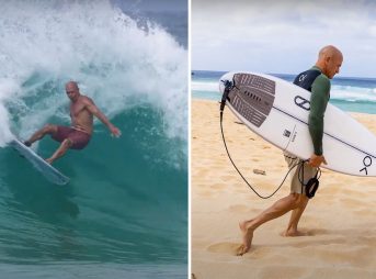 Kelly Slater at Ehukai Beach Park on the S Boss and the FRK