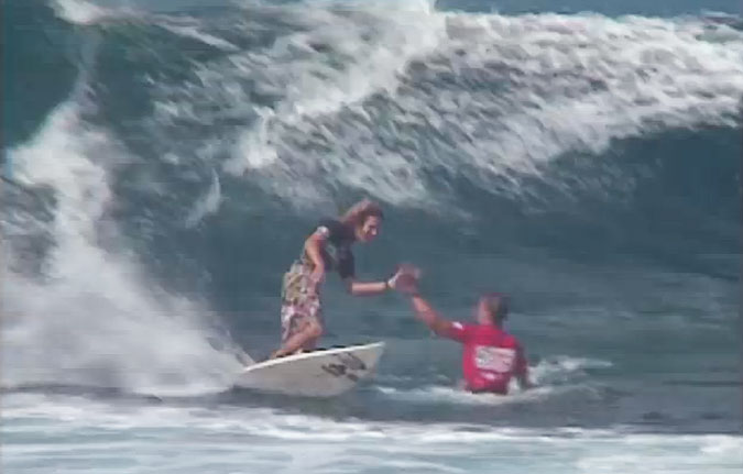 What people often forget was that the 1995 competition was dramatic for more reasons than The High Five. Going into the competition, Sunny Garcia was in the lead of the WCT rankings, with an advancement to the third round handing him the world title. However, Sunny had an an off-day during the second round and despite multiple forces (including his heat opponent Mark Occhilupo offering Sunny his board when Sunny lost his), he lost to Occy and with it the World Title. While Occy had allegedly been threatened by Hawaiians to leave the island if he won his heat, Sunny, in another show of true sportsmanship, hugged the Australian, making sure any of those Hawaiians seeking revenge would think twice.
