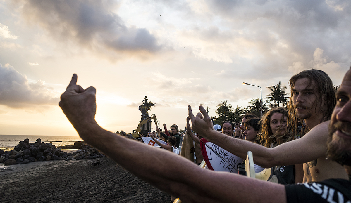 “You have no idea what you are doing! What this is going to do!” yelled local surfer Made in both English and Indonesian.