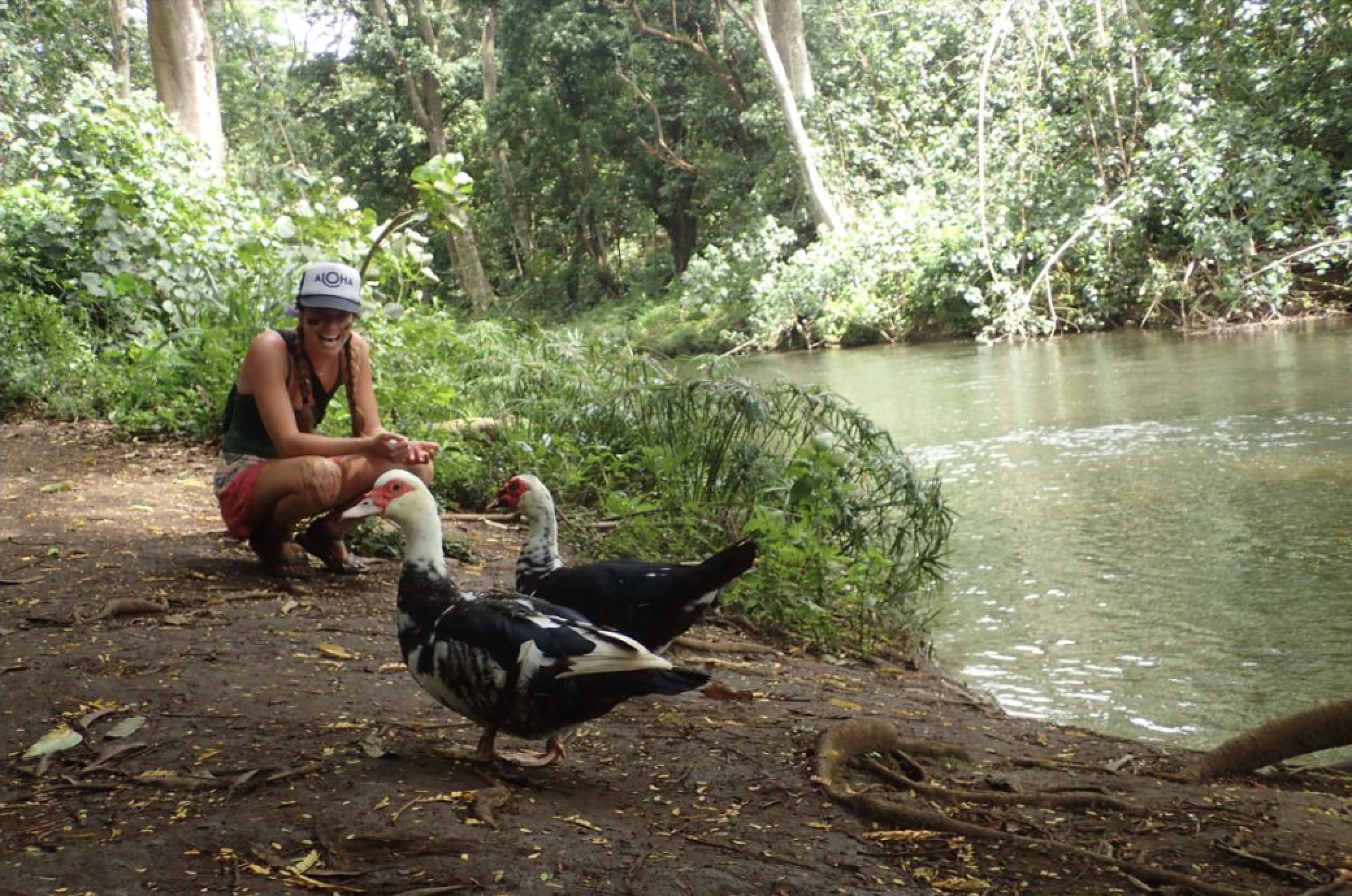After we’d had our fill, we retraced our steps down the path and paddled back to the fork in the river. This time we took the south fork and were immediately immersed in a stunning, tranquil setting, a nice treat after the busy falls. The wind died down after rounding the bend in the river and within minutes we found ourselves at the Fern Grotto—a lava rock cave overgrown with tropical plants. We were told that the swimming hole was just ten minutes further down and is the crown jewel of the river but unfortunately, a fallen tree prevented us from going further.