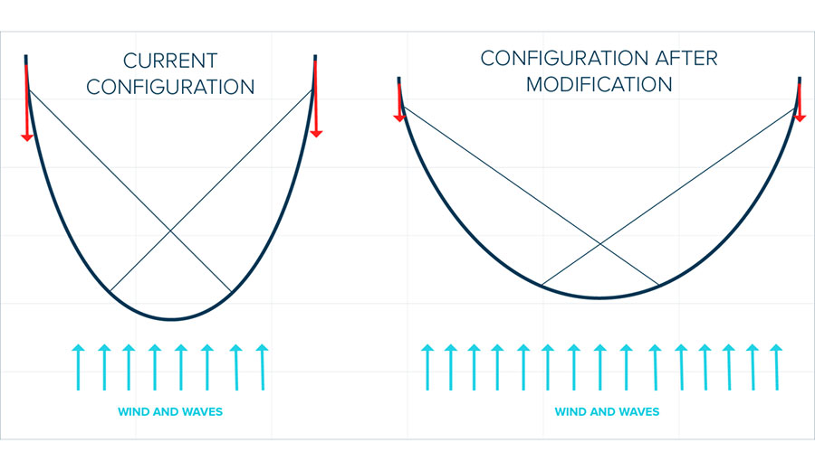 The current configuration vs the planned one. Image: Ocean Cleanup