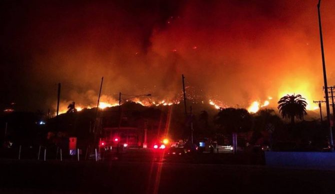 The Thomas Fire in Ventura and Santa Barbara counties has burned an area larger than NYC. According to officials it’s 10% contained. Photo: CAL Fire
