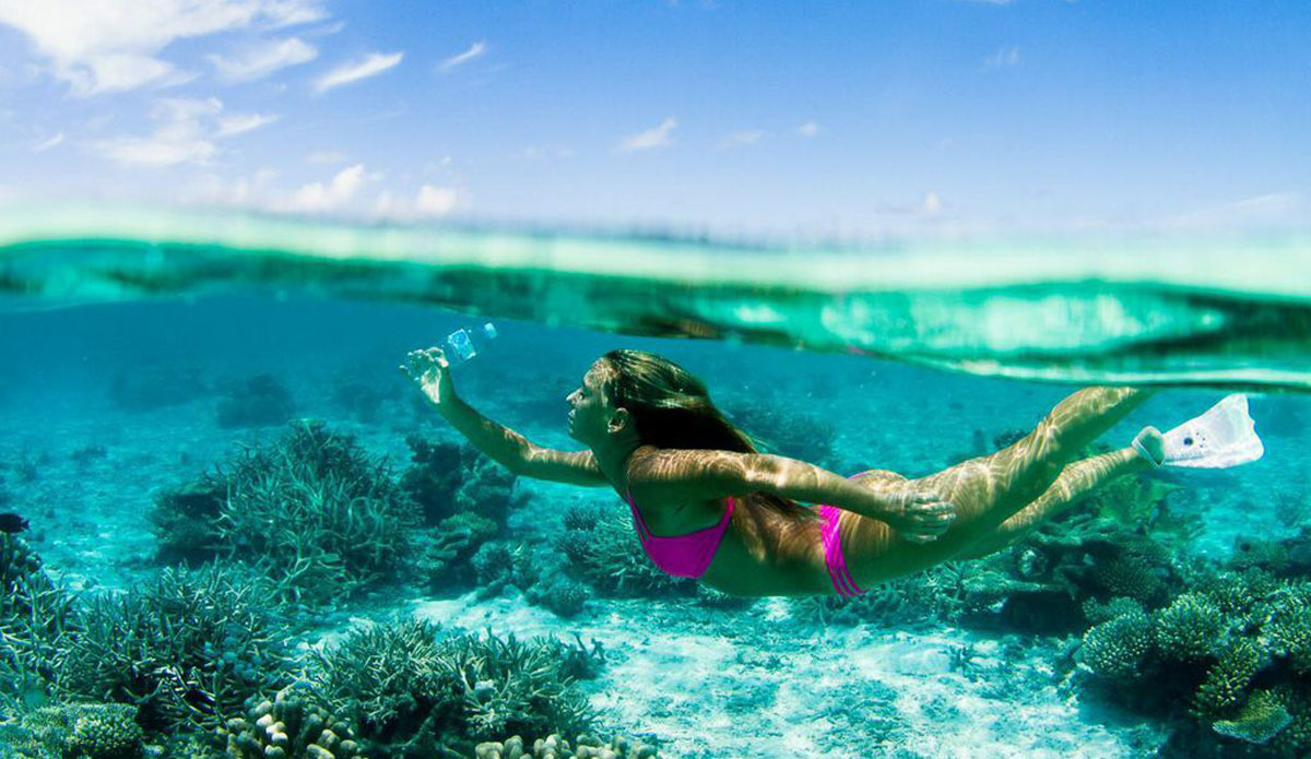 Over a year later, I returned to the Maldives, hosted by Shaahina Ali and accompanied by photographers and videographers Sarah Lee and Mark Tipple. Together we set off on a wild adventure back to the island wearing clothing made from recycled plastic bottles by a company called Repreve that transforms plastic into usable thread for world-renowned brands like Patagonia, Odina, Teeki, Volcom and Roxy. My surfboards are eco-friendly too and are Sustainable Surf-approved, made from recycled styrofoam.